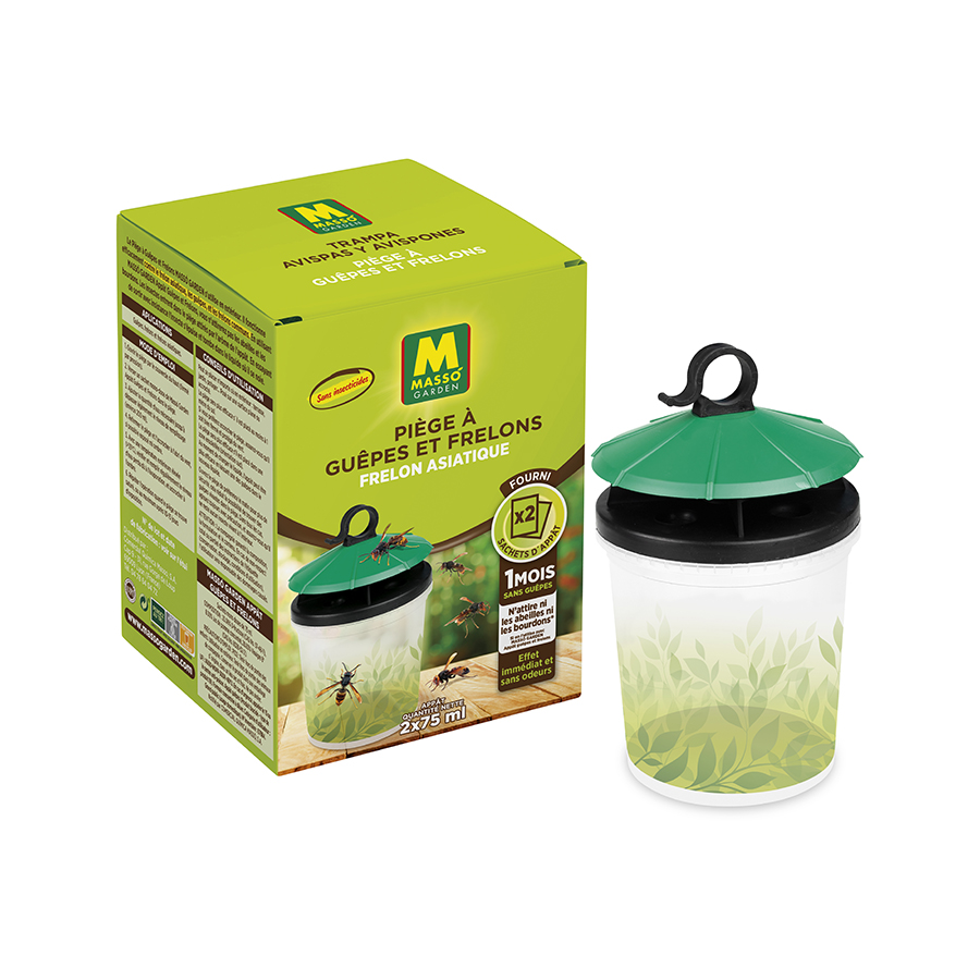 L´Appât Guêpes et Frelons Massó Garden fonctionne efficacement contre le frelon asiatique, les guêpes et les frelons communs.
